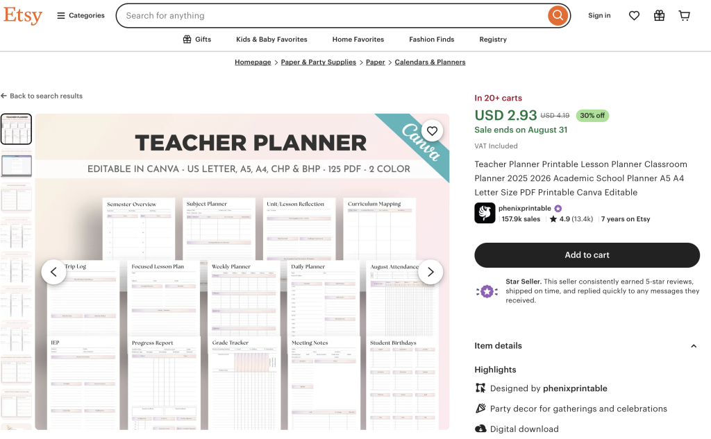 You can also sell digital downloads on Etsy (assuming you craft them yourself). For example, you can sell Canva templates, printable materials, phone wallpapers, travel guides, and so on.